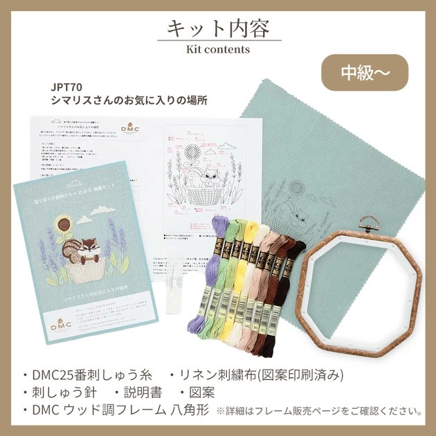 💢 非 現貨|🟩購自日本|DMC刺繡套裝 (中級)|藝術家Chicchi 繡布,繡線,繡針 繡繃|12個月森林動物 - 8月 花栗鼠 [PJ-25-000125-8月 JPT70 花栗鼠]