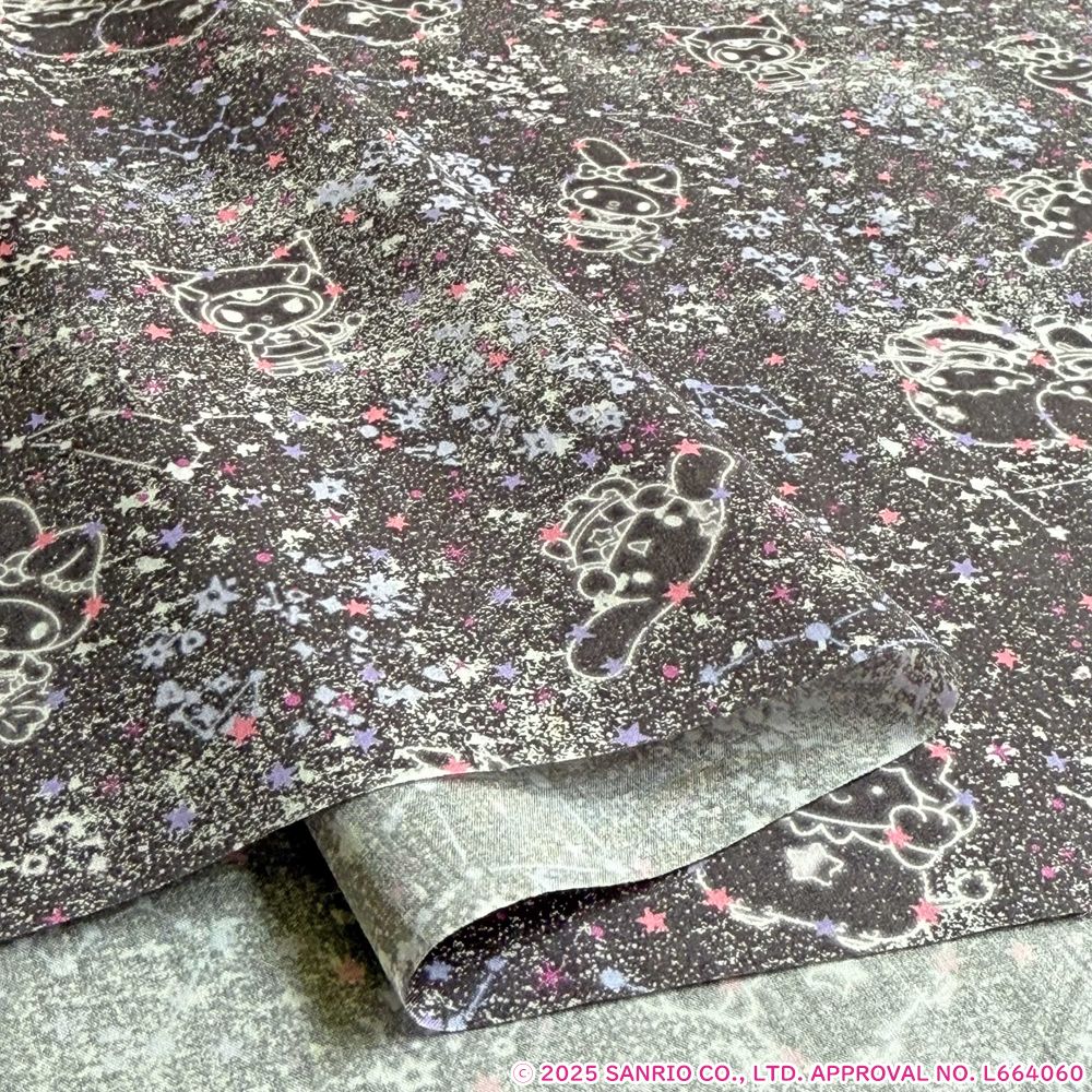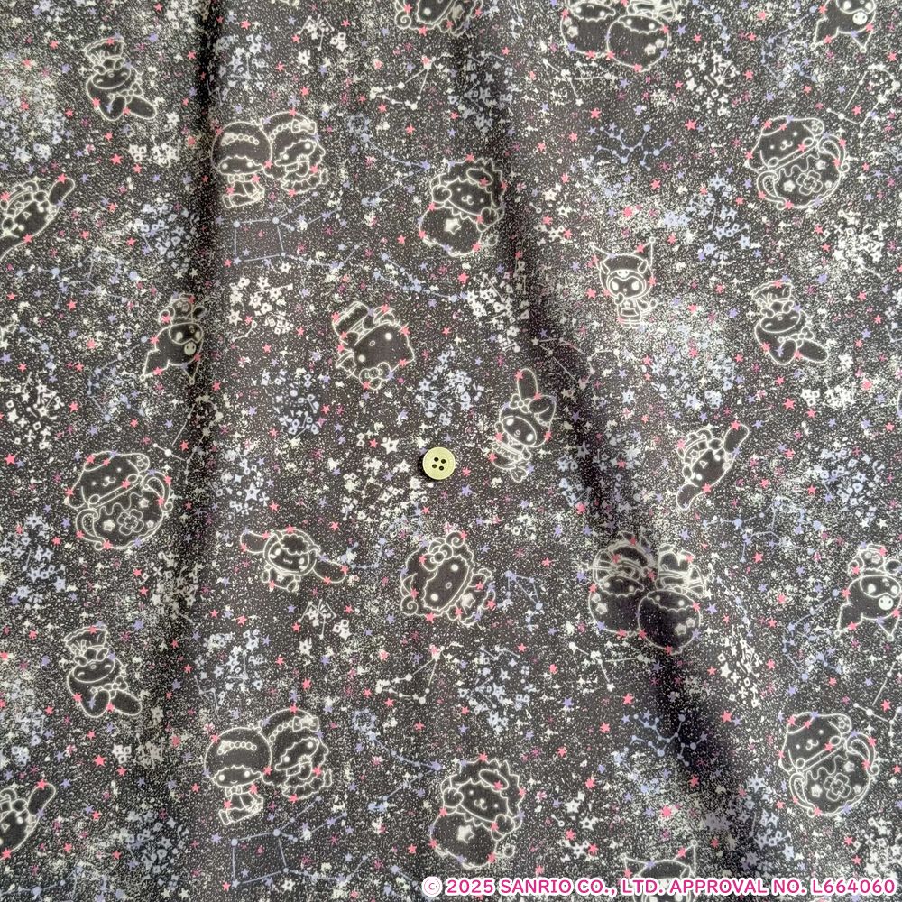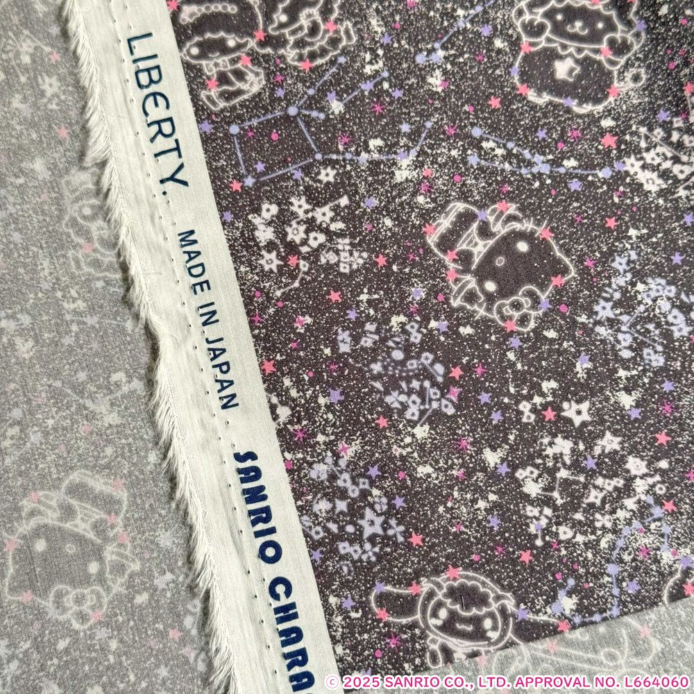 【1米 價格】🟣日本製|💢 非 現貨|🇯🇵 日本製|100% 棉 ~ "Liberty" 偏薄、軟|Little Twin Stars 50th Anniversary Collection|Constellation Sky|Sanrio Little Twin Stars、Hello Kitty、My Melody|2025年 12月 [PJ-25-000087-炭灰]