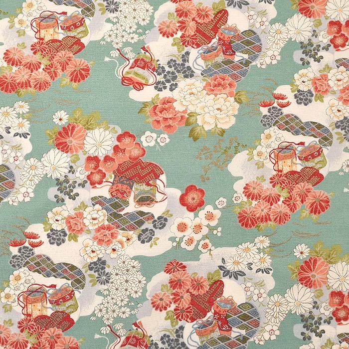 【1米 價格】🔴日本製|💢 非 現貨|🇯🇵 日本製|100% 棉 ~ 薄|金粉 日式花卉 和風|2025年 12月 [PJ-25-000089]