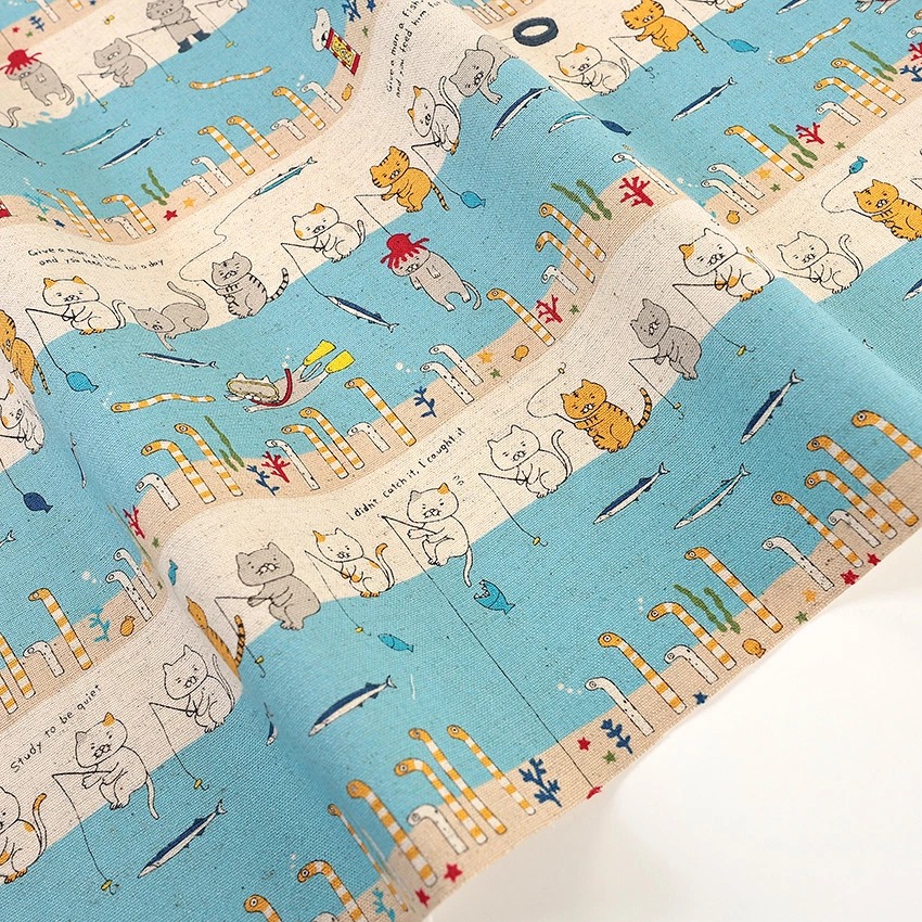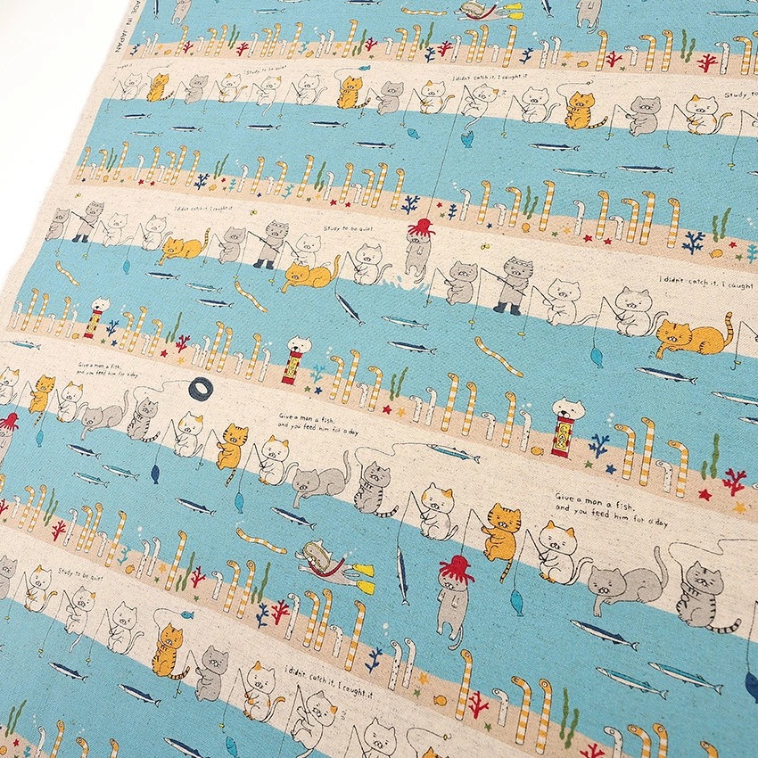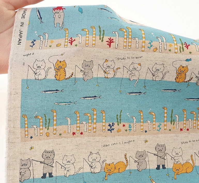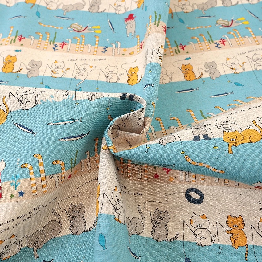 【1米 價格】🔴日本製|💢 非 現貨|🇯🇵 日本製|85% 棉 15% 麻|動物 釣魚貓|2025年 12月