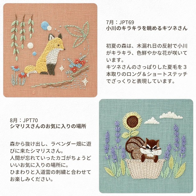 【1米 價格】🟩購自日本|💢 非 現貨|DMC刺繡套裝 (中級)|藝術家Chicchi 繡布,繡線,繡針 繡繃|12個月森林動物 - 7月 狐狸 [PJ-25-000125-7月 JPT69 狐狸]