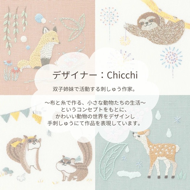 【1米 價格】🟩購自日本|💢 非 現貨|DMC刺繡套裝 (中級)|藝術家Chicchi 繡布,繡線,繡針 繡繃|12個月森林動物 - 9月 熊