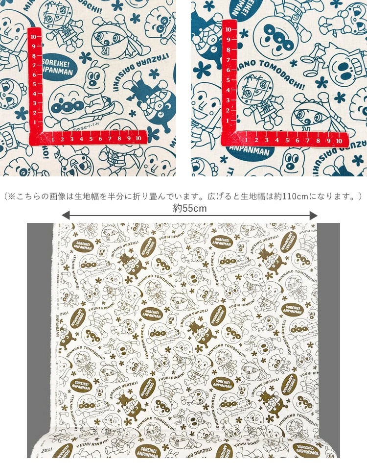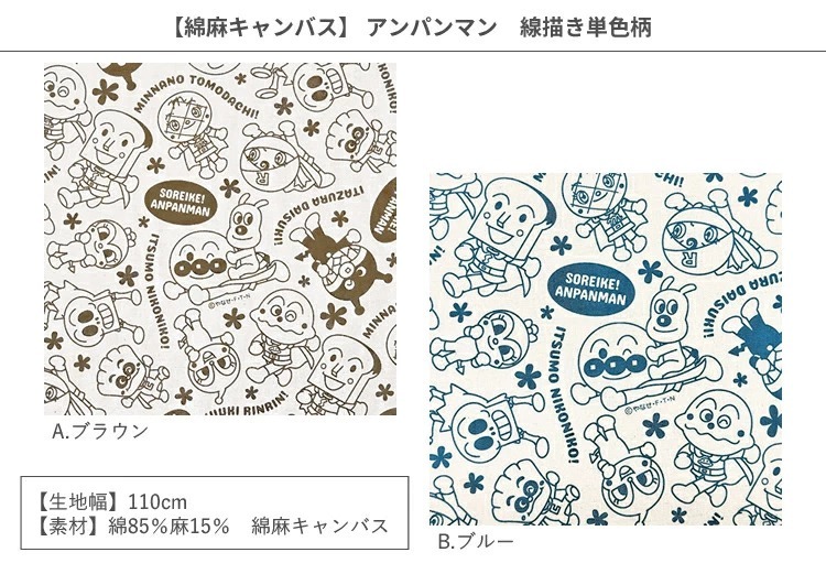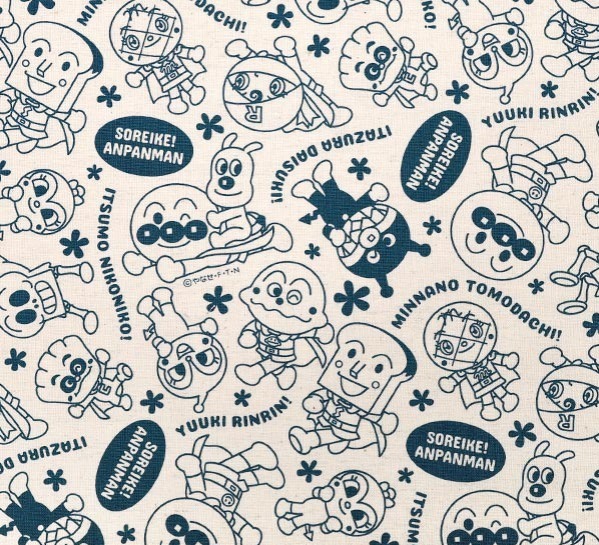 【1米 價格】🟦日本製|💢 非 現貨|100% 棉 ~ 85%棉 15%麻|麵包超人 線條畫單色圖案|2026年 2月