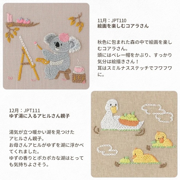 【1米 價格】🟩購自日本|💢 非 現貨|DMC刺繡套裝 (中級)|藝術家Chicchi 繡布,繡線,繡針 繡繃|動物們享受四季 - 11月 無尾熊 [PJ-25-000147-11月 JPT110 無尾熊]