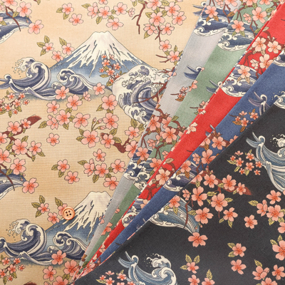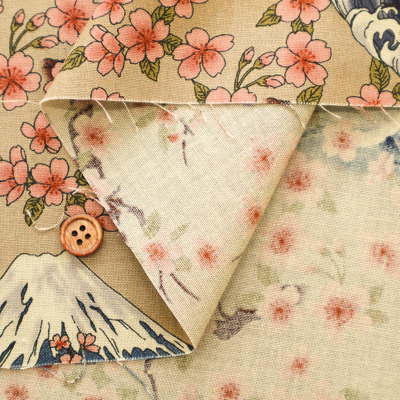 【1米 價格】🟡日本製|💢 非 現貨|100% 棉 ~ 薄棉|和風 日式 櫻花和富士山|2026年