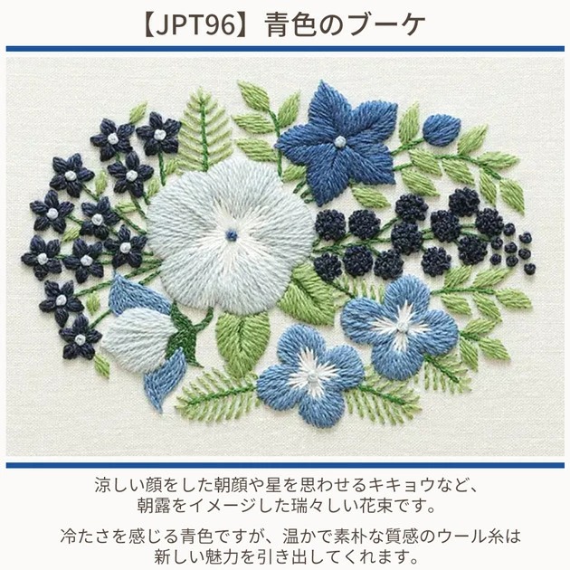 💢 非 現貨|🟩購自日本|DMC刺繡套裝 (預計製作時間 :8小時或以上)|Yumiko Higuchi 花束系列刺繡套裝 + 繡繃| FLOWER BOUQUET COLLECTION -JPT96藍色花束